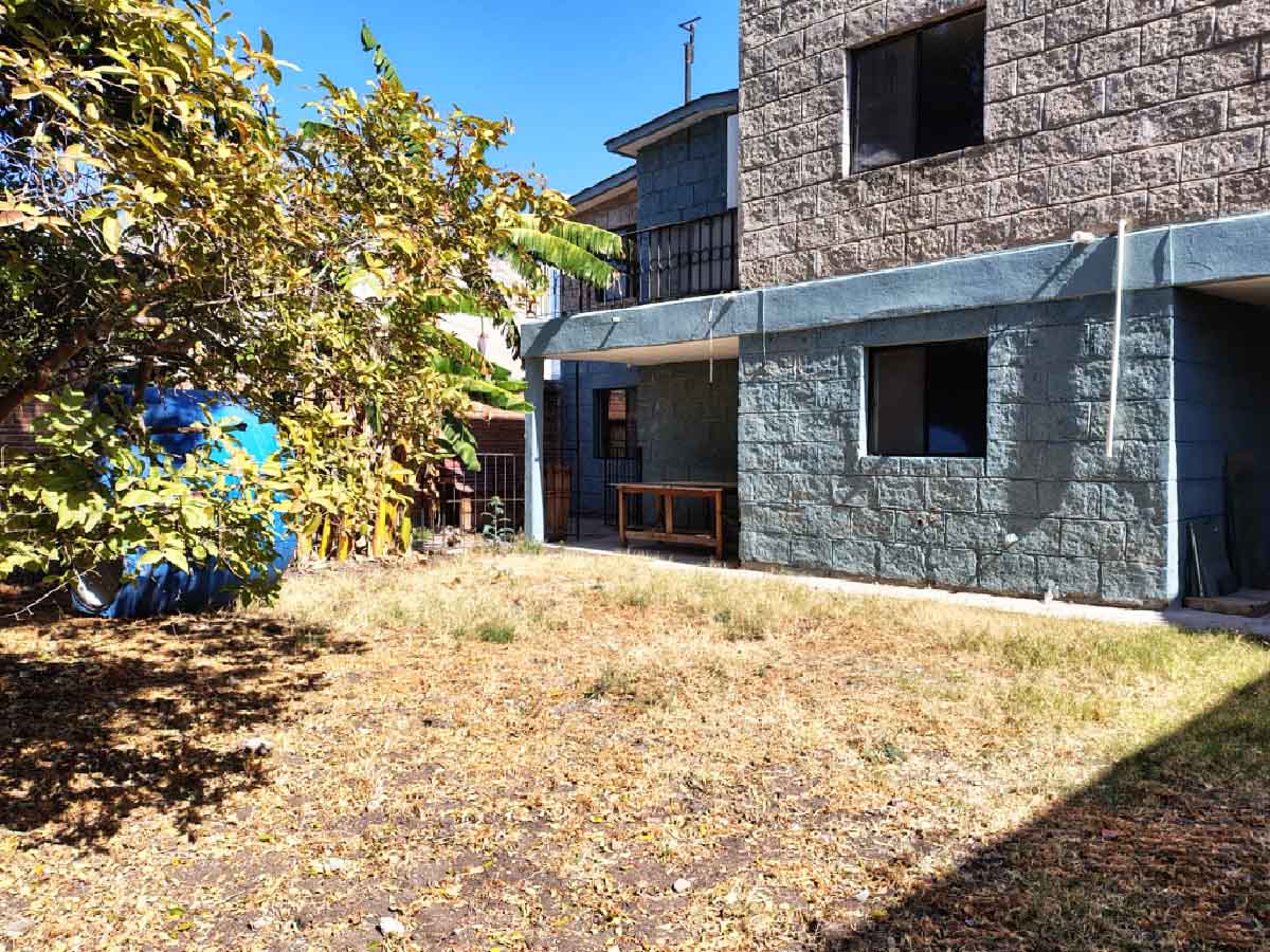 Jardín posterior con árboles frutales.