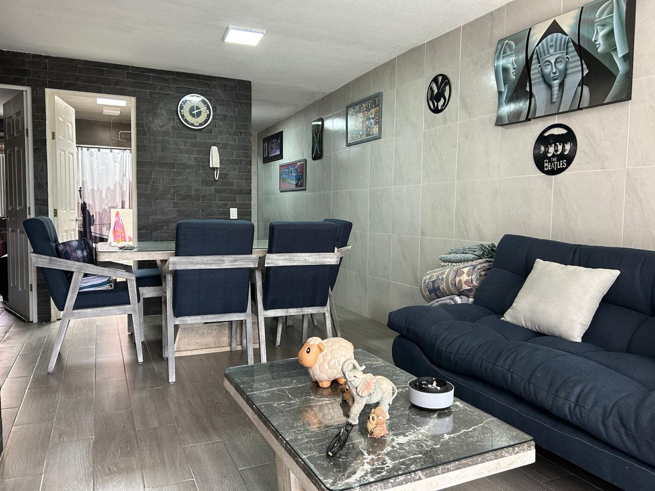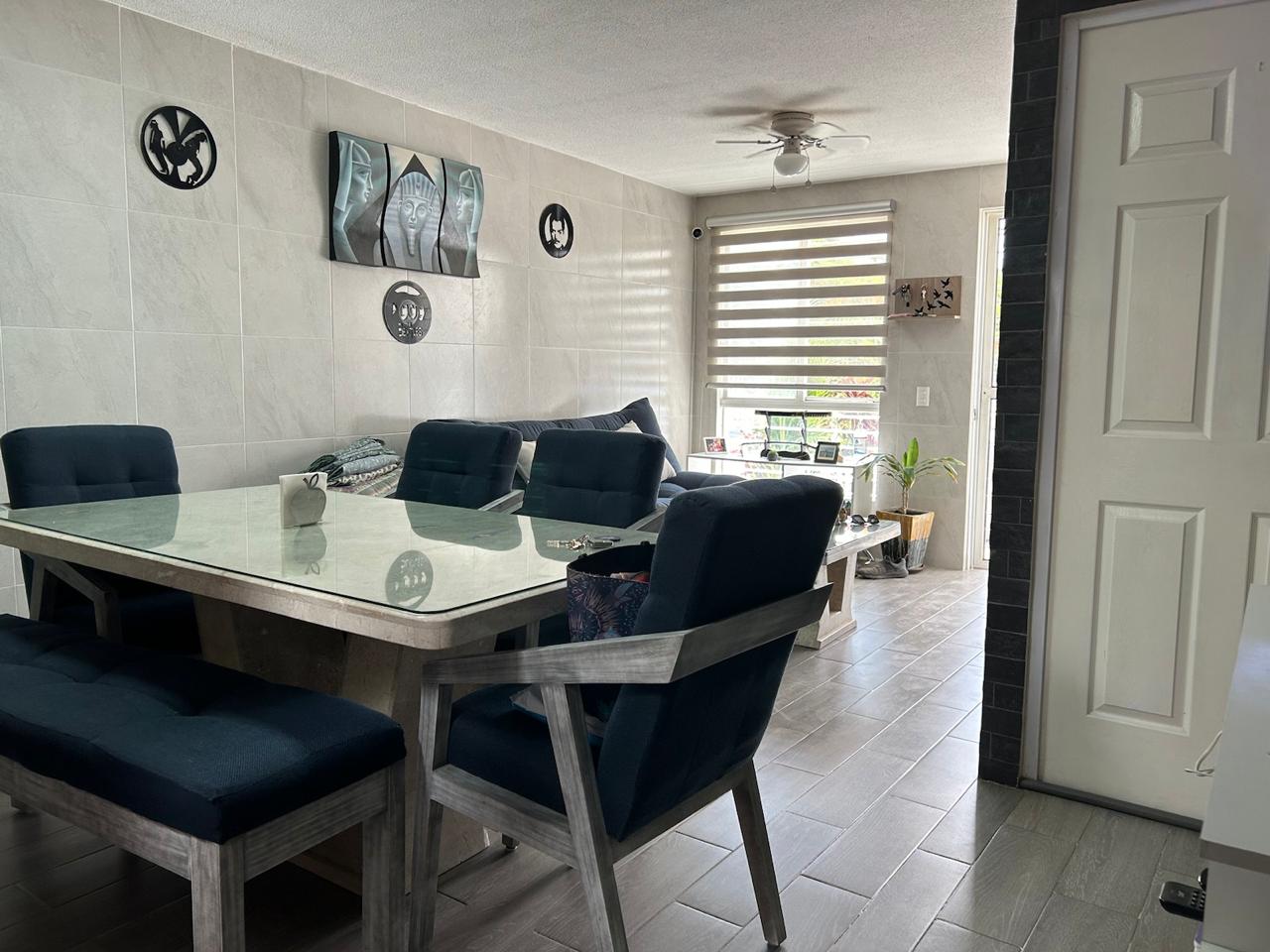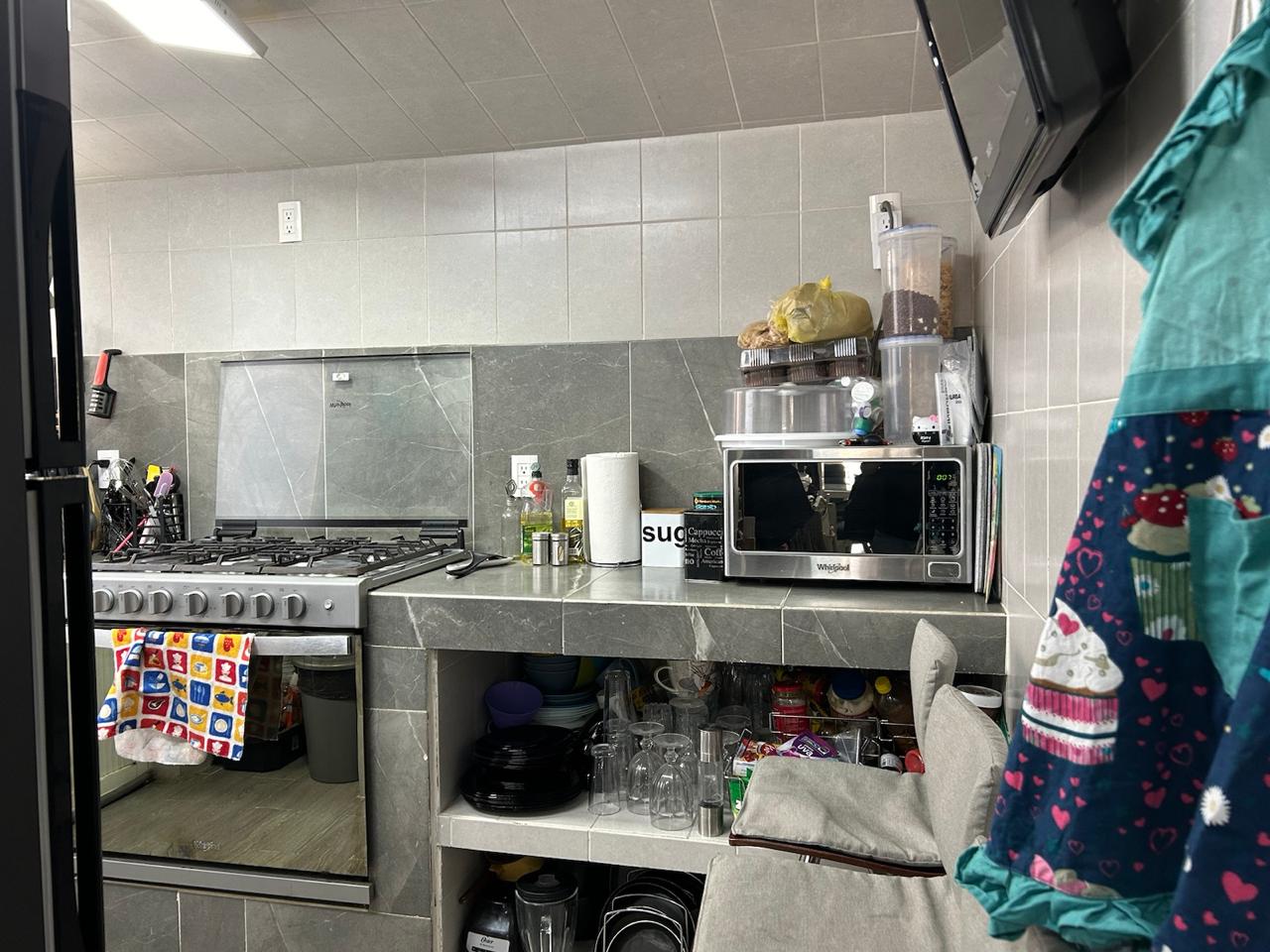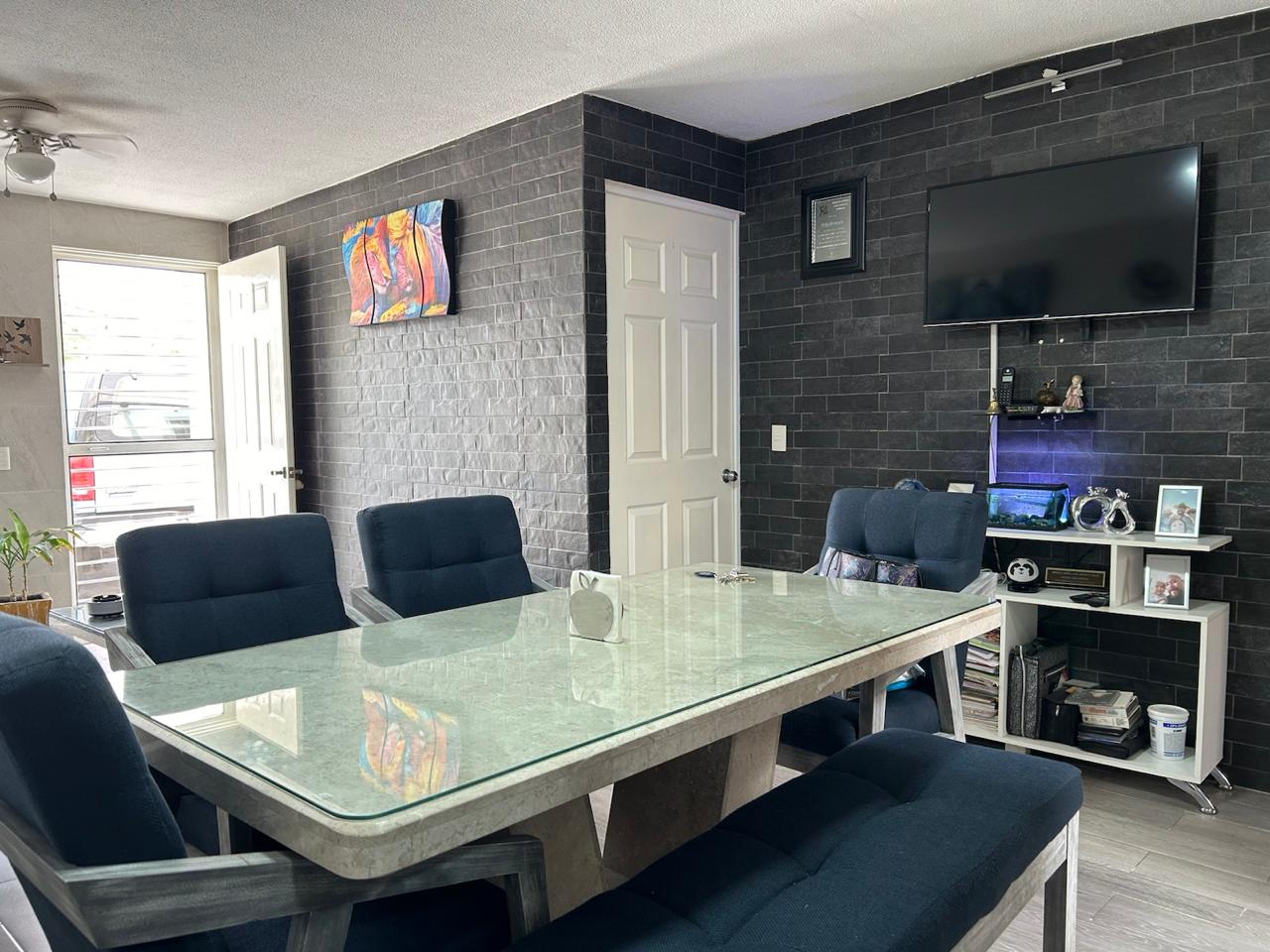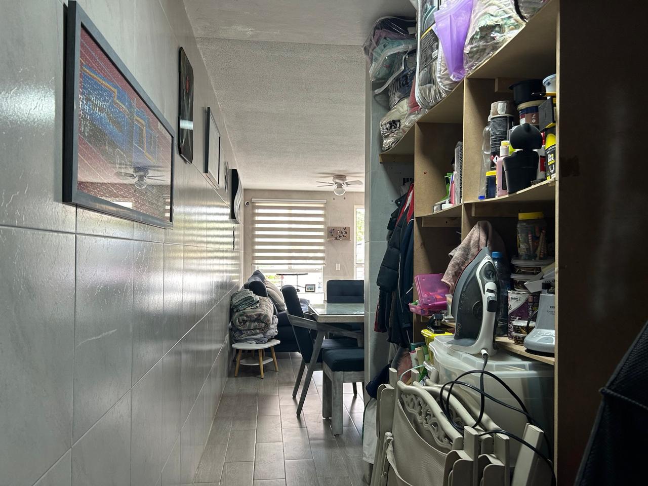 Cuenta con sala-comedor, cocina, área de lavado, baño completo, dos recámaras con vestidor y clóset amplio, así como cochera techada para dos autos. Una de las recámaras cuenta con ampliación, y toda la casa tiene loseta en pisos y paredes.