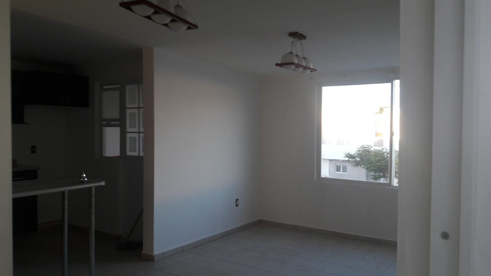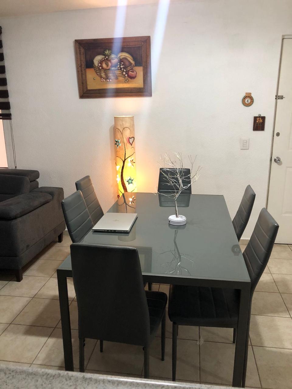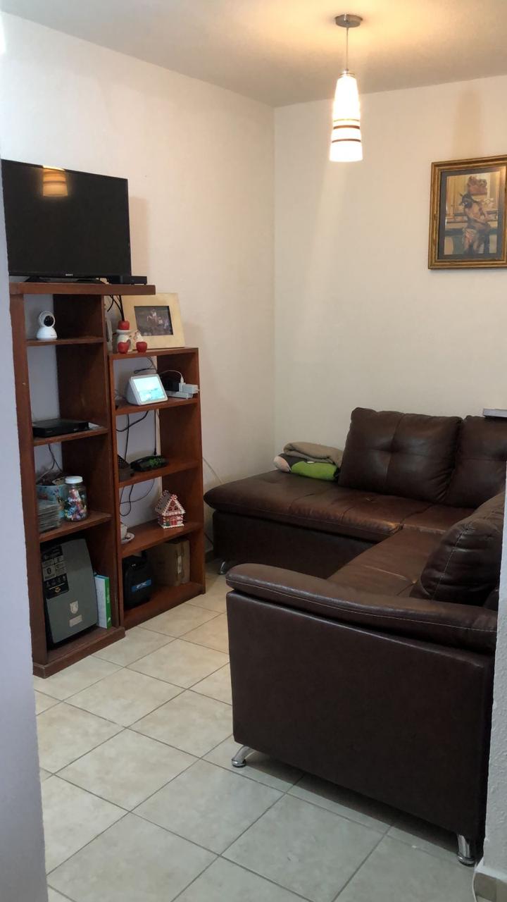 Cuenta con sala-comedor, cocina integral, patio de servicio, sala de televisión o estudio, dos recámaras y dos baños completos, uno de ellos en la recámara principal.