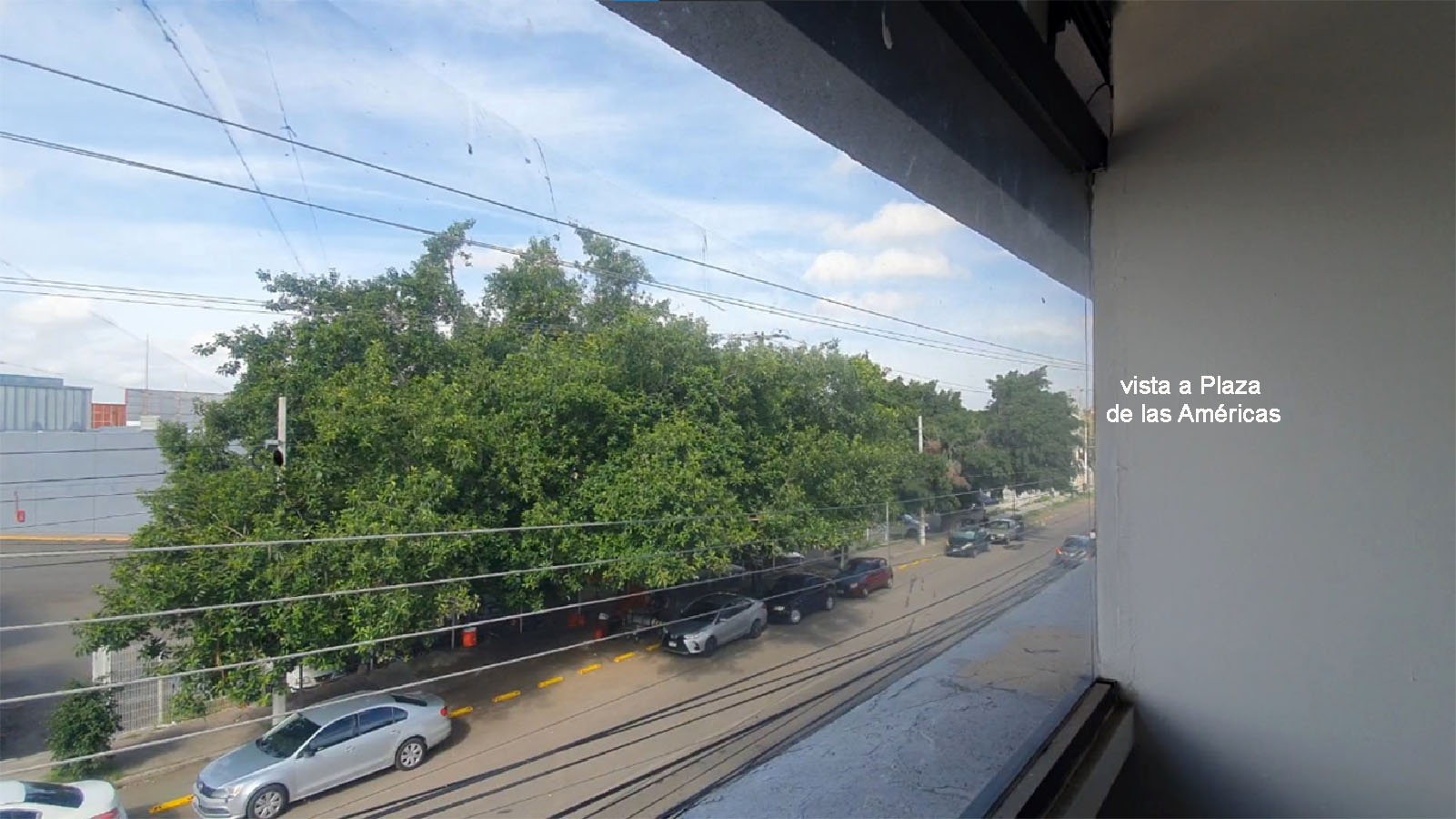 La oficina en renta se ubica en segundo piso, sin elevador, en un edificio de oficinas que no cuenta con estacionamiento, situado a espaldas de Plaza de las Américas, lo que ofrece la ventaja de tener transporte público y servicios muy cerca.