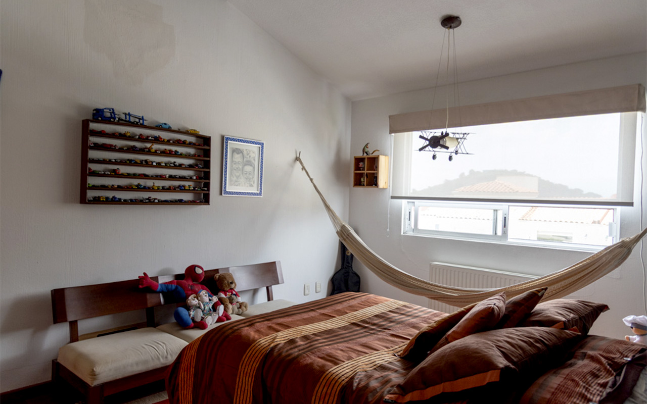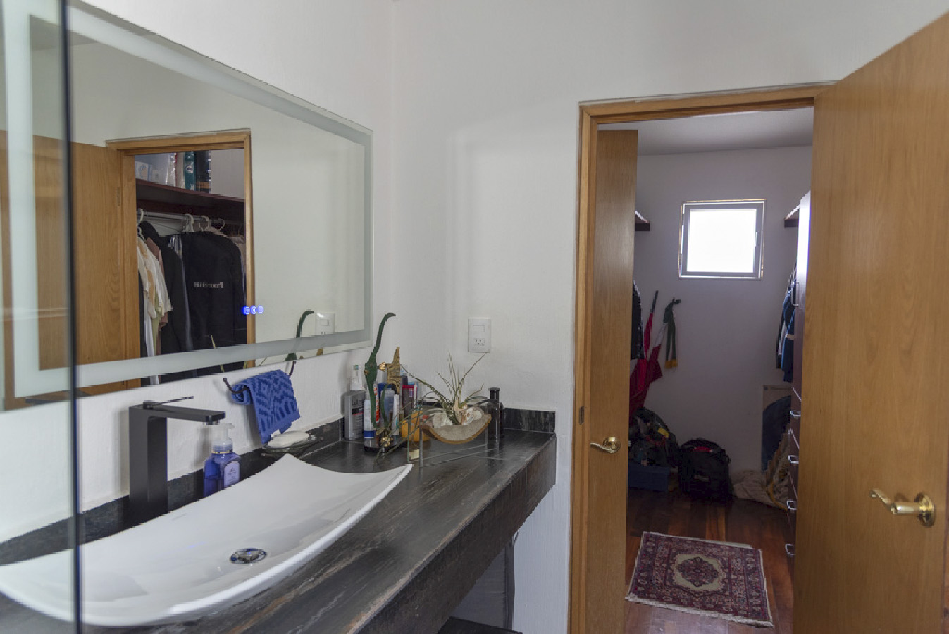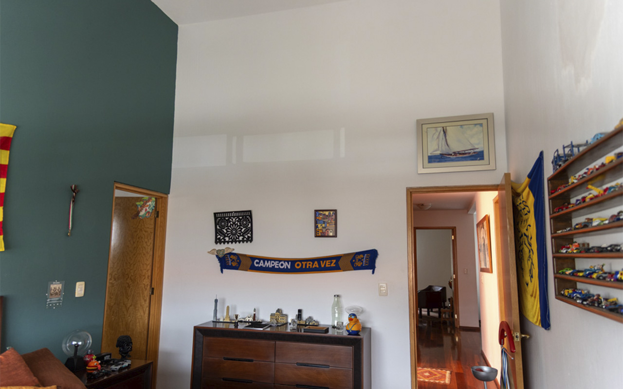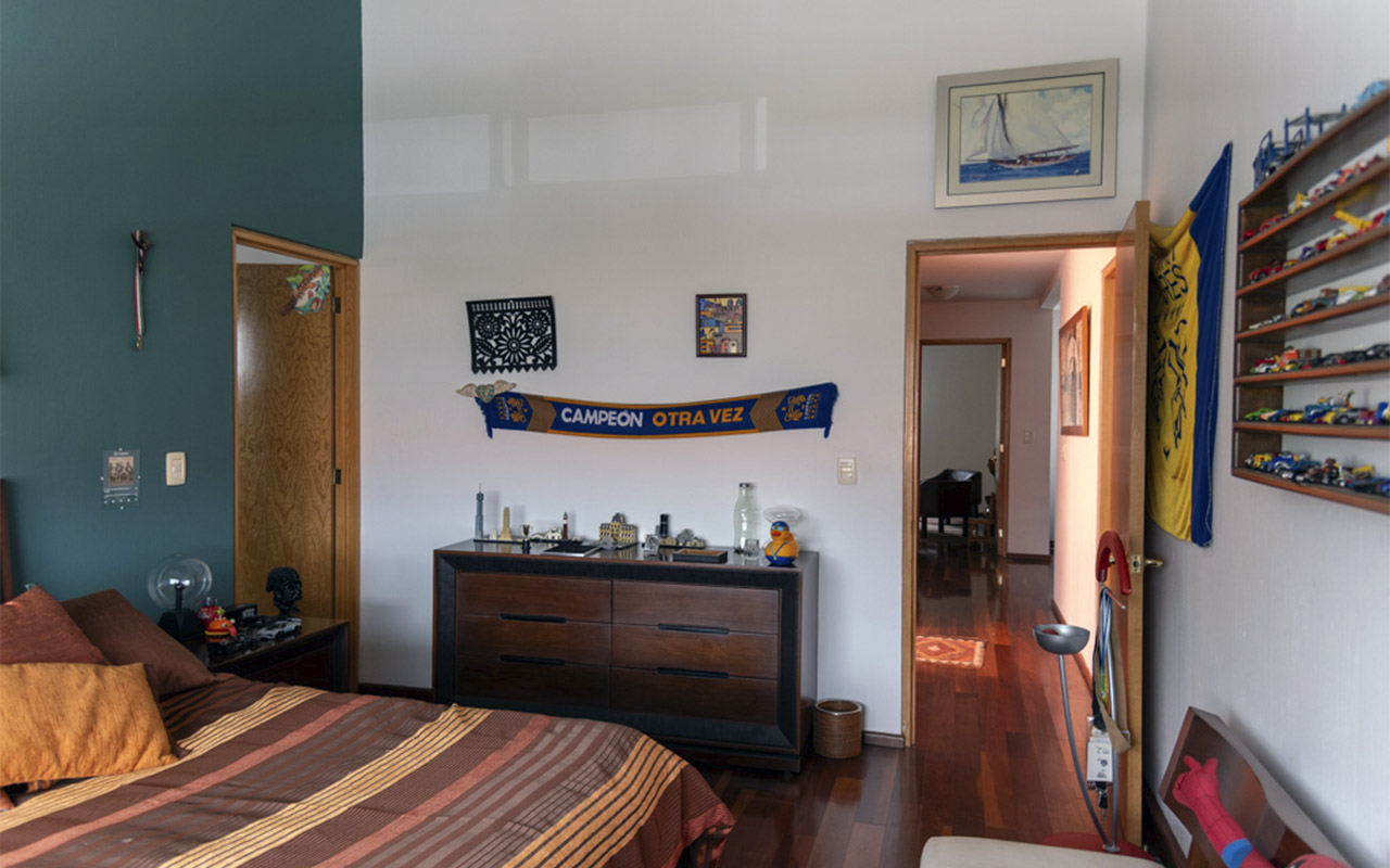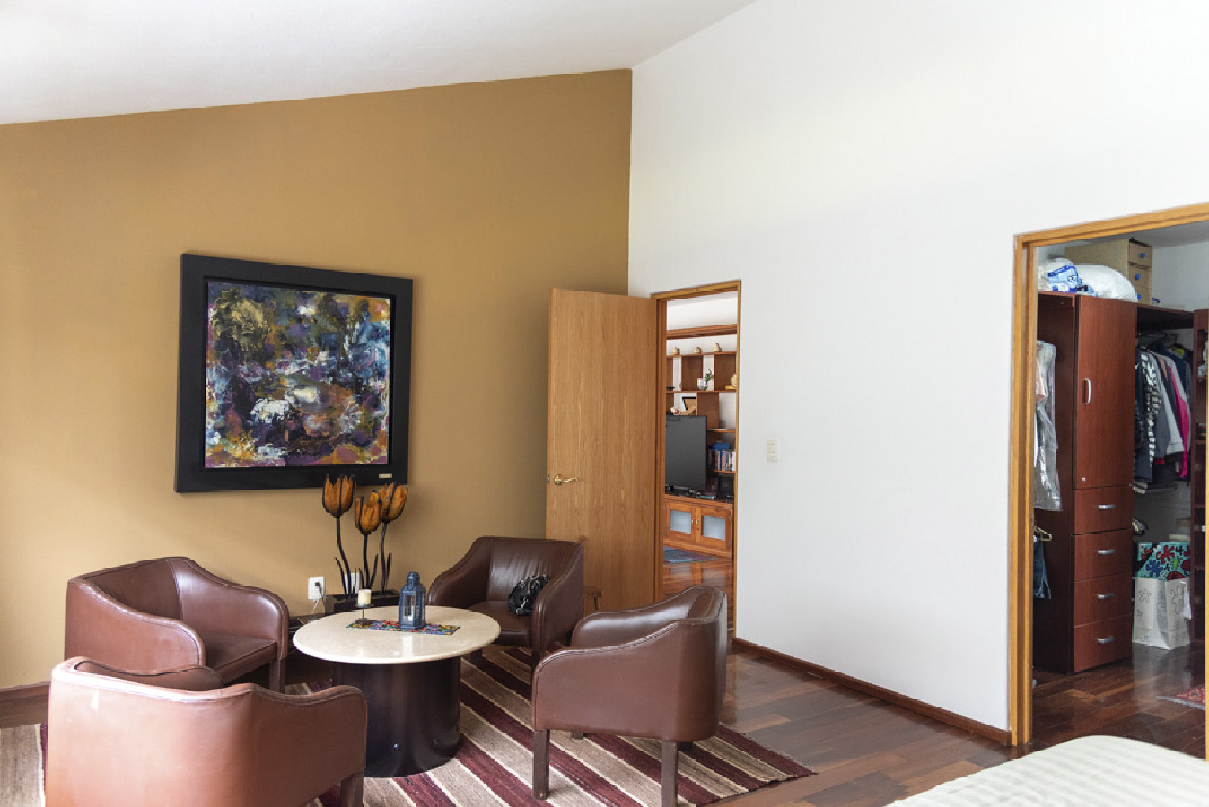 Planta alta: sala de televisión y tres recámaras, cada una con vestidor y baño.